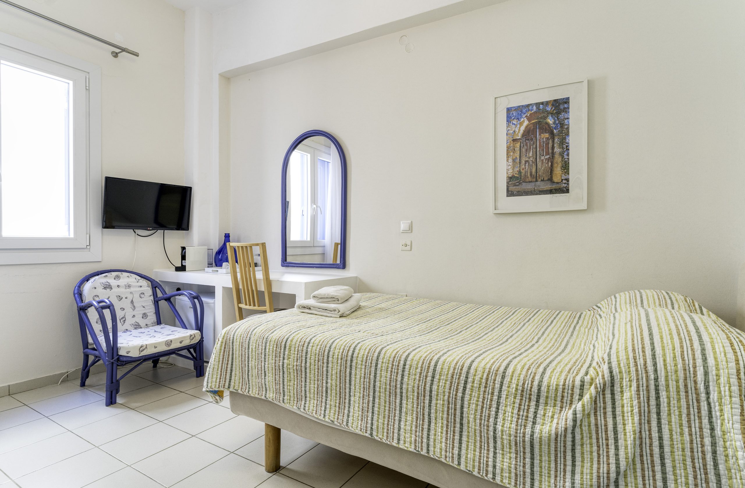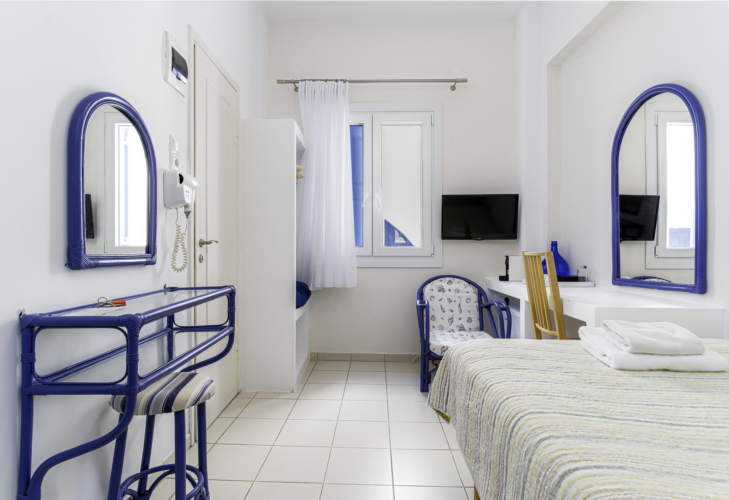Our single rooms are bright and well-maintained, providing a tranquil haven in the heart of Mykonos Town. You’ll find yourself just steps away from the beach, shops, and vibrant nightlife, allowing you to explore the island at your own leisure.