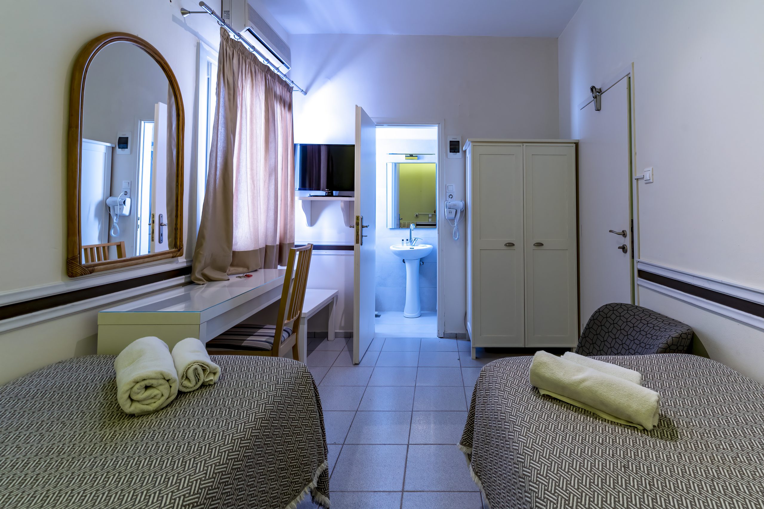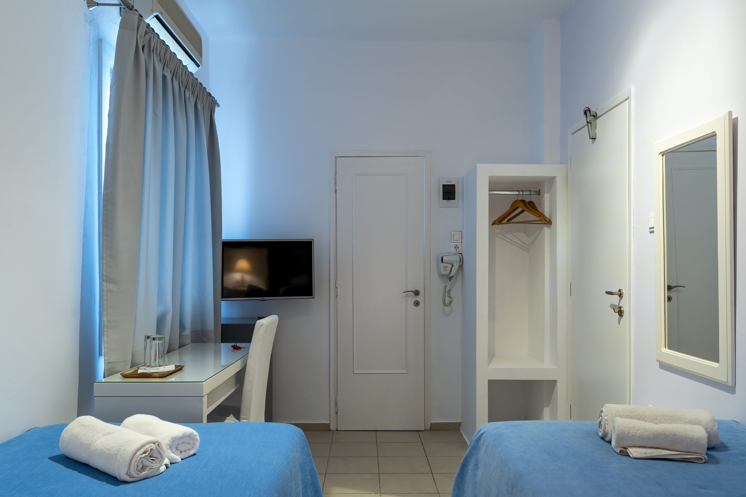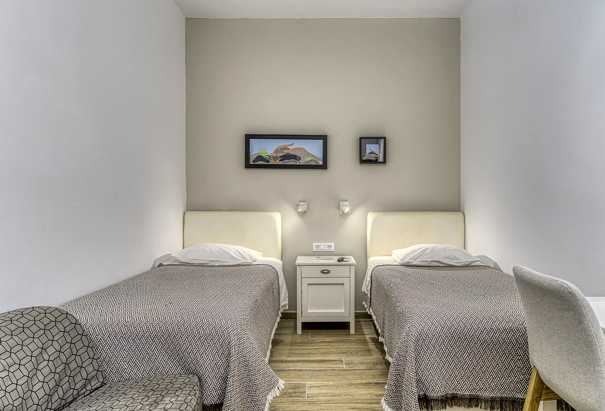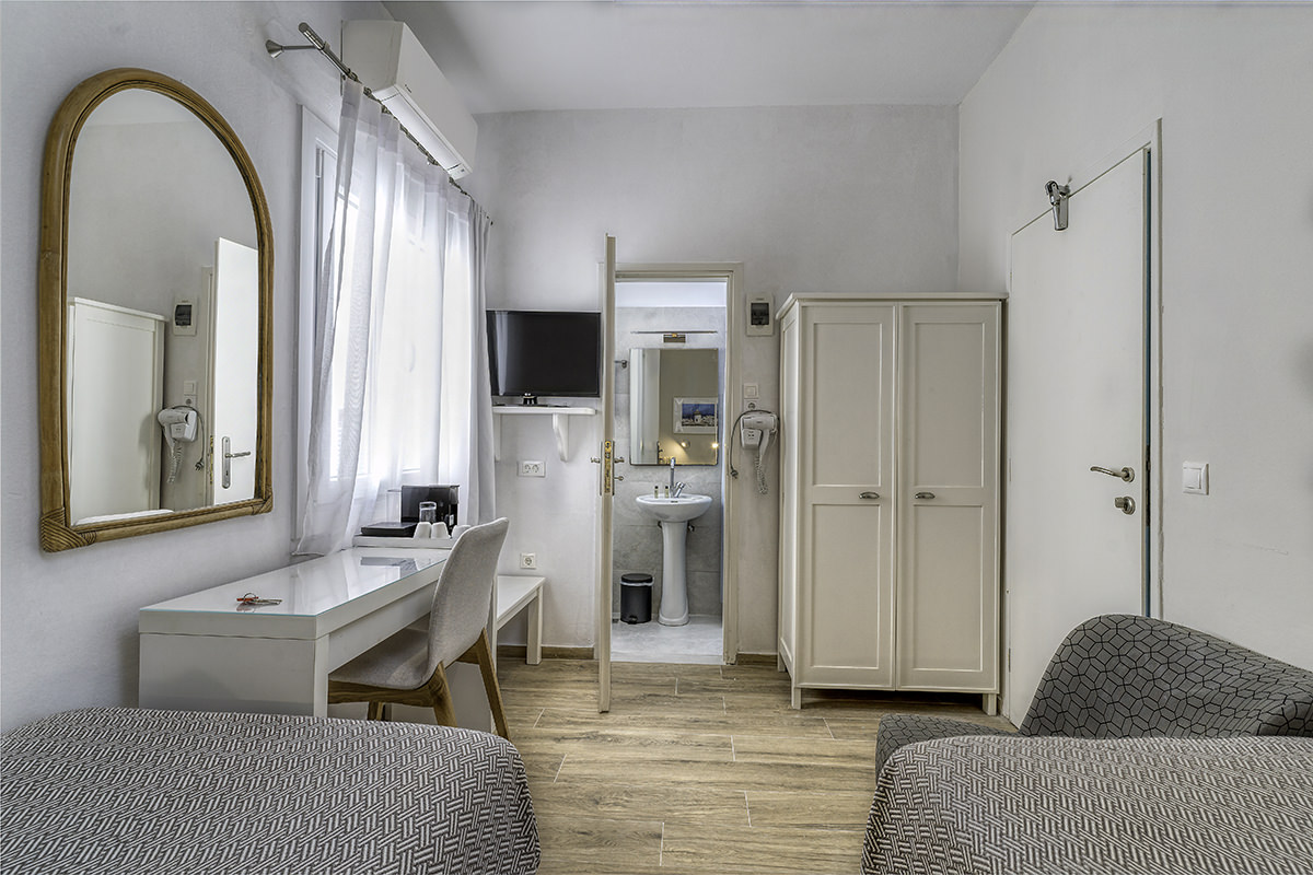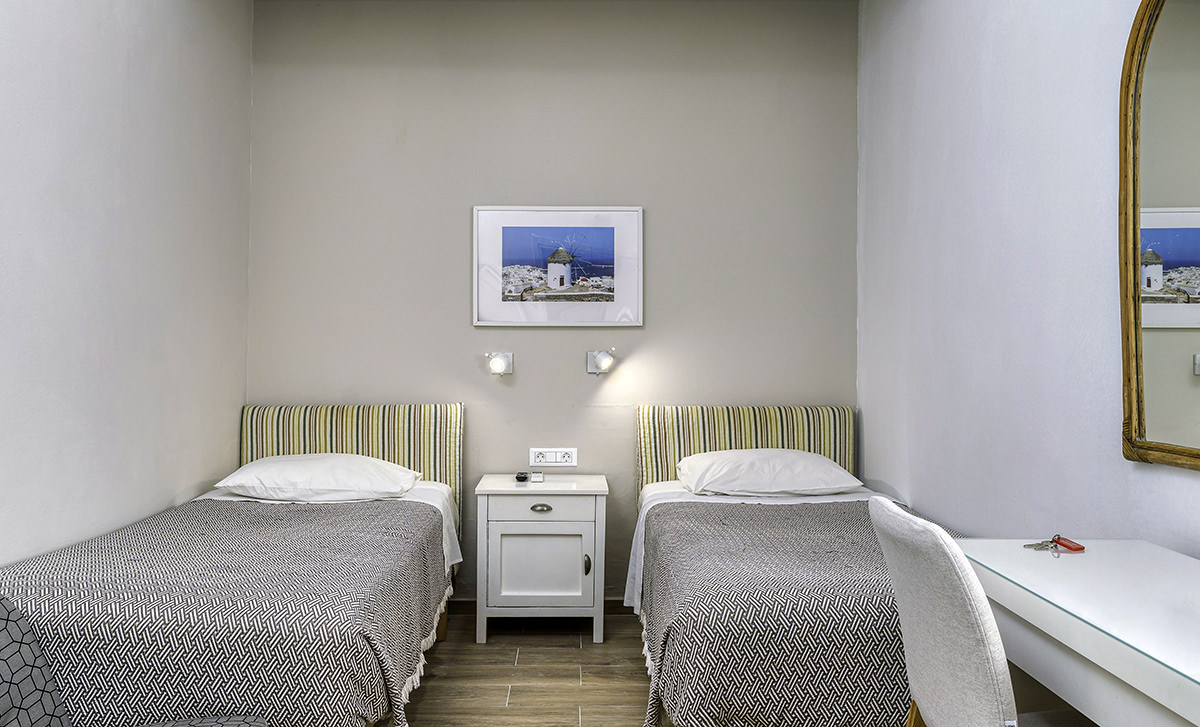 Experience the charm of Mykonos in our comfortable twin rooms, perfect for couples or close friends traveling together. Each room features: